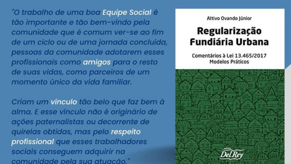 Esse é um dos livros de cabeceira dos técnicos da Gratitude! Na imagem, selecionamos um trecho muito bacana sobre a atuação das Equipes Sociais. A obra, escrita pelo arquiteto e advogado Altivo Ovando Júnior, aborda a Regularização Fundiária com vocabulário simples e disponibiliza modelos práticos de requerimentos, ofícios, selagem, ficha cadastral, entre outros. O livro