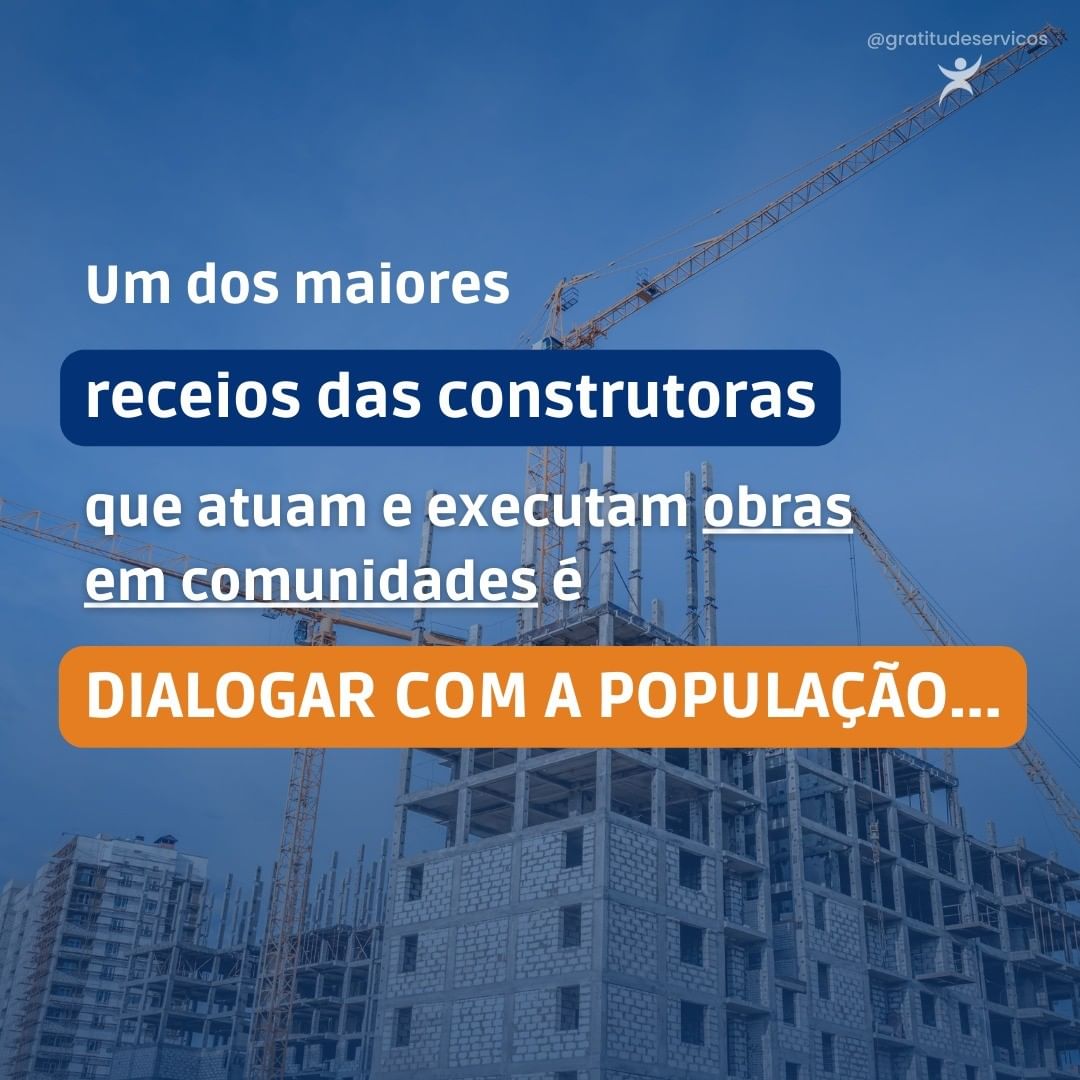 Um dos maiores receios das construtoras que atuam e executam obras em comunidades é dialogar com a população, mas com uma equipe especializada na gestão do trabalho técnico social essa preocupação é descartada, pois a pactuação e as discussões com moradores, representantes e lideranças são realizadas pela equipe social, antes das obras iniciarem.