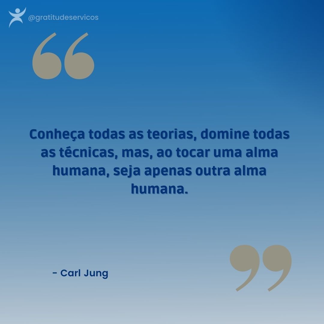 “Conheça todas as teorias, domine todas as técnicas, mas ao tocar uma alma humana, seja apenas outra alma humana.” Carl Jung