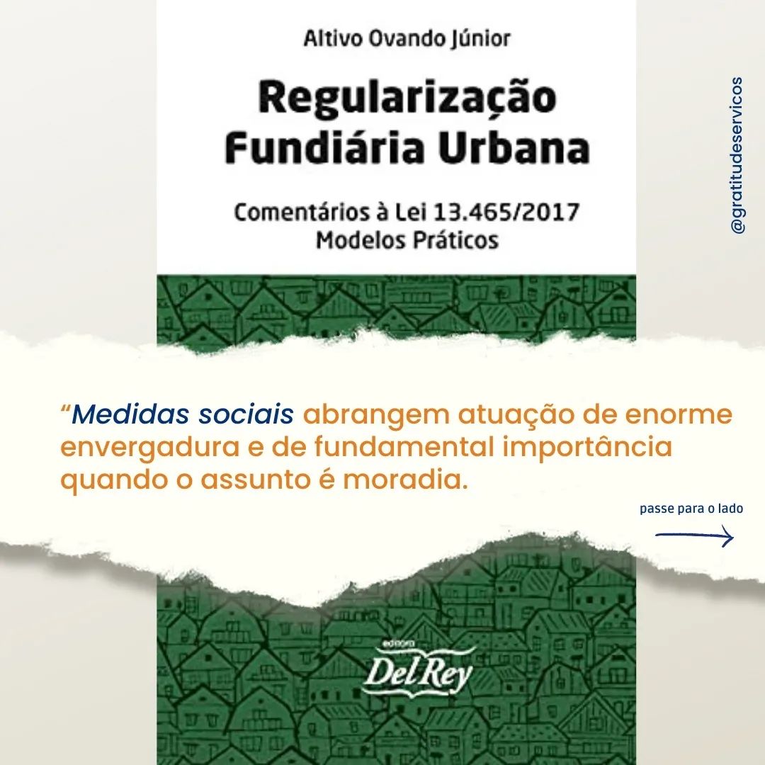 No trecho em destaque, o advogado, arquiteto e urbanista Altivo Ovando Júnior ( @altivoovandojr_adv ), que atua com o Direito Urbanístico, faz as suas considerações sobre como deve ser entendido o termo “medidas sociais” no contexto da Reurb.