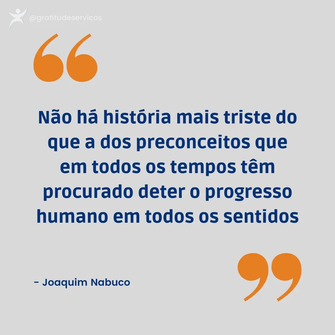 “Não há história mais triste do que a dos preconceitos que em todos os tempos têm procurado deter o progresso humano em todos os sentidos.” Joaquim Nabuco